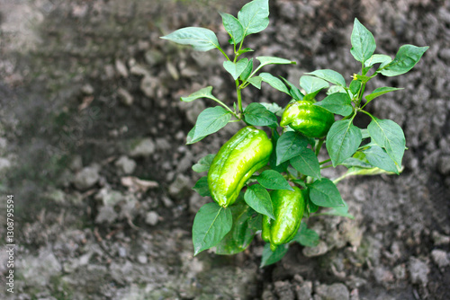 Fototapeta premium Green pepper on the Bush.