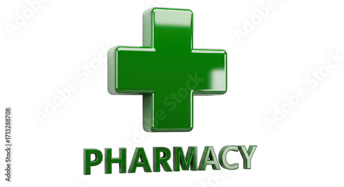 Fototapeta premium Green Pharmacy Cross Symbol with Text.