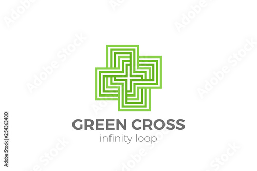 Obraz premium Green Pharmacy Logo Cross design infinity loop lines vector template Linear...