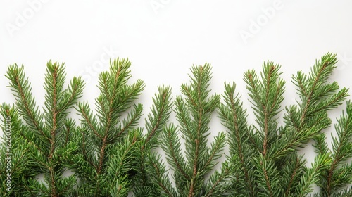 Obraz premium Green Pine Branches Arranged Against White Background
