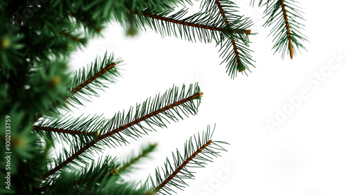 Obraz premium Green Pine Branches on White Background