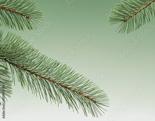 © Nikolay, Obraz premium Green pine branches with delicate needles against a soft gradient background.