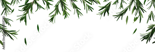 © pixcel3d, Fototapeta premium Green Pine Branches with Falling Leaves Background Isolated on transparent background