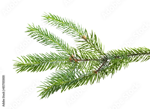 © New Africa, Obraz premium Green pine tree branch isolated on white