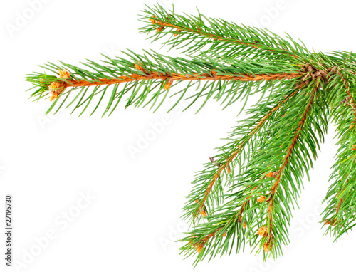 Obraz premium Green pine tree branch isolated on white background
