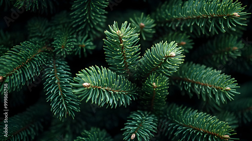 © Siasart Stock, Obraz premium Green Pine Tree Branches Close Up Macro Photography
