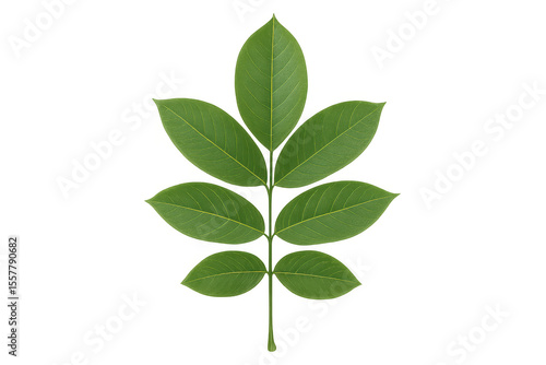 © Michael, Fototapeta premium Green pinnately compound leaf with translucent edges, ideal for botanical graphic design layouts
