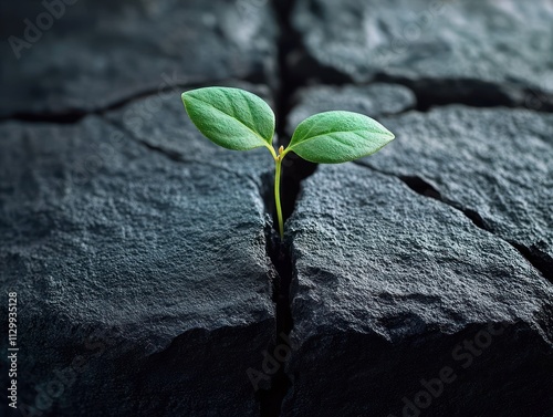 Naklejka premium Green plant breaking through stone cracked surface symbolizing renewal resilience growth and new life