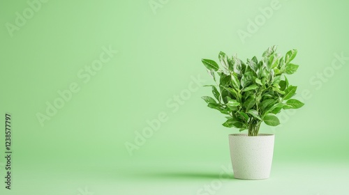 Obraz premium Green plant in pot on green background; nature, growth