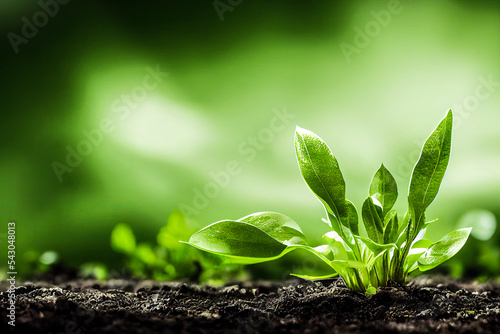 © DKN Media, Naklejka premium Green plant in the ground, ecology sustainability concept