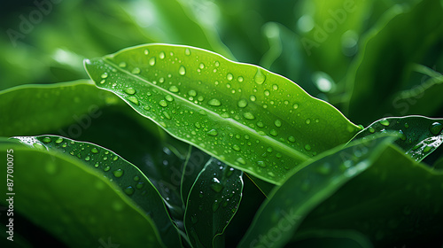© Jet_Chaiyasing, Fototapeta premium Green plant leaf in close-up