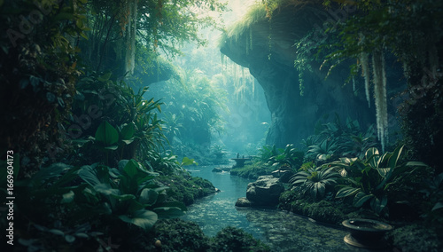 © Agus, Fototapeta premium Green plant leaves and forest background, Nature background