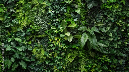 Fototapeta premium Green plant wall, natural forest backdrop