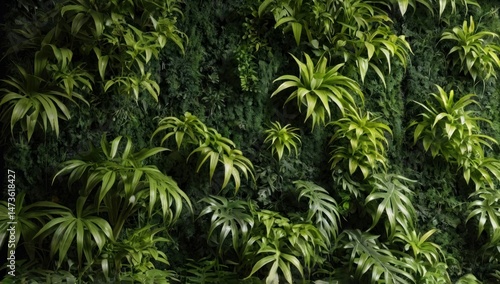 © Hataf, Naklejka premium Green plant wall with natural lighting and no extra elements.