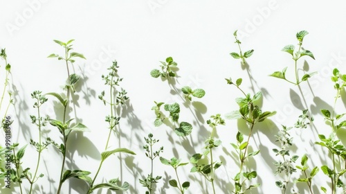 © Rere_Art151, Fototapeta premium Green Plants with Shadows on a White Background