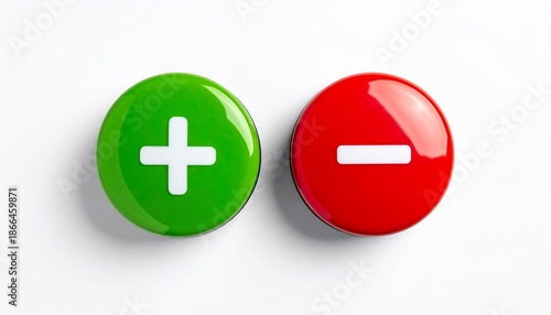 © Graphiloom, Fototapeta premium Green plus and red minus buttons on white background