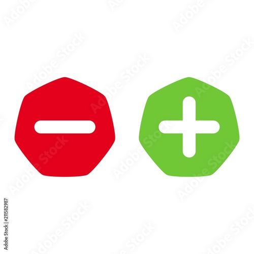© sljubisa, Fototapeta premium Green plus and red minus flat vector icon