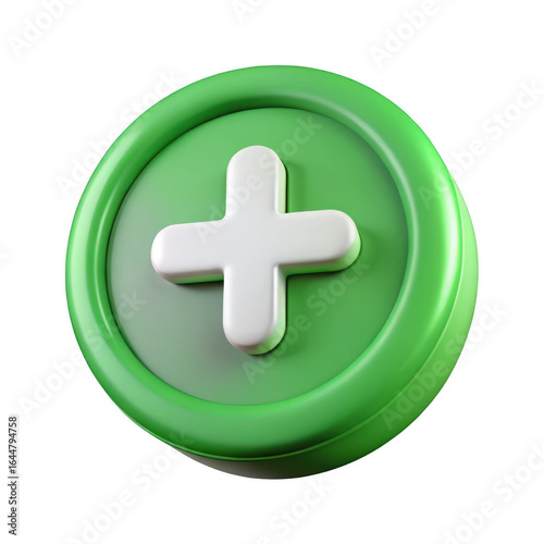 © MDAMAN, Fototapeta premium Green plus button isolated on transparent background