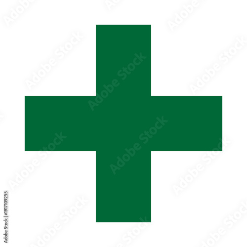 © Ahin, Fototapeta premium Green Plus Icon. Green Cross Sign, Plus Symbol Medical Logo Icon.
