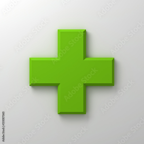 © masterzphotofo, Obraz premium Green plus sign abstract on white wall background with shadow 3D rendering
