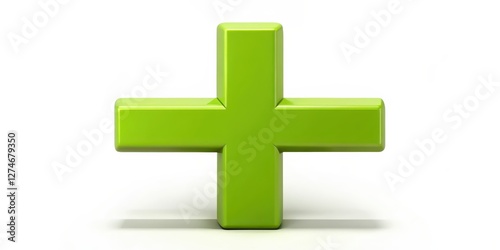 © artisttop, Obraz premium Green Plus Sign, 3D Render, White Background