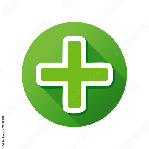 © GenMotion, Fototapeta premium Green plus sign icon with long shadow in a flat design style