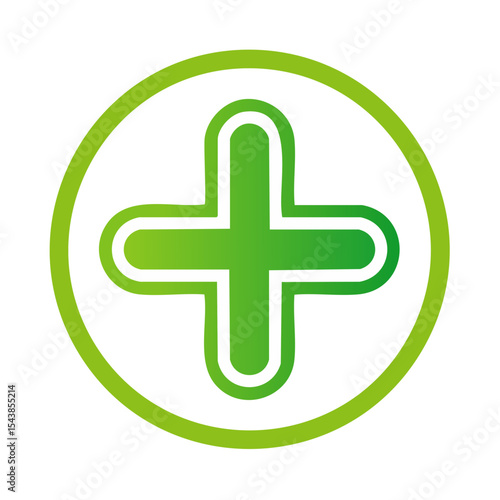 Obraz premium Green Plus Sign in Circle Gradient Health Symbol Addition Graphic Element