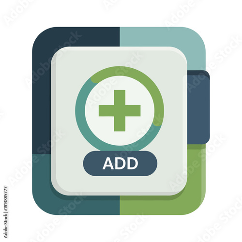 Fototapeta premium Green Plus Symbol and Add Button Icon.