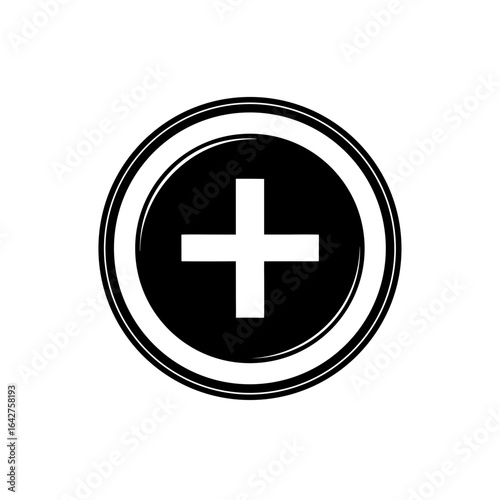 Obraz premium green plus symbol inside glossy golden circle on transparent background