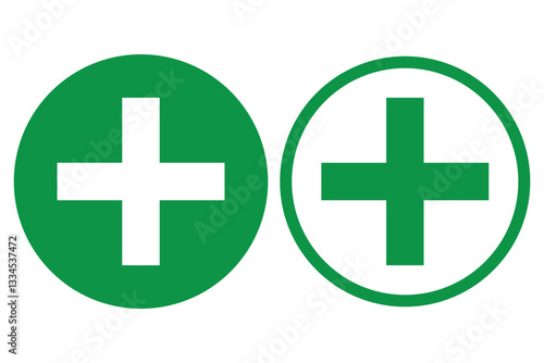 Fototapeta premium Green plus symbol. 1st aid symbol. Medical plus sign. Cross sign. Vector illustrator
