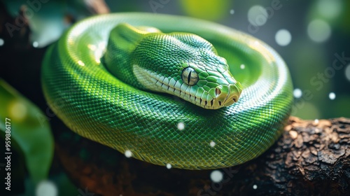© gen_pick, Fototapeta premium Green Python Scales Texture Close-Up Intricate Natural Design