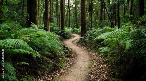 Fototapeta premium Green Rainforest Path. A narrow path winding through a dense green rainforest.