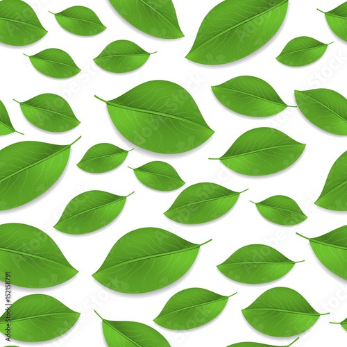 © ganolmc, Fototapeta premium Green realistic leaves seamless pattern. Vector