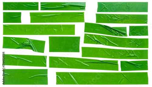 © Wahyudi, Obraz premium Green rectangles, overlapping and taped, arranged in a brick-like design with varying shades