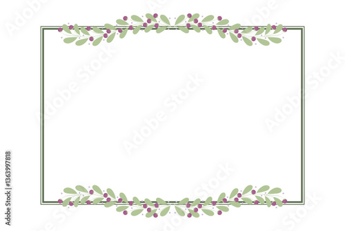 Obraz premium Green Rectangular Borders Frame With Purple And Green Leaves