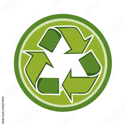 Obraz premium Green recycle icon in circle, arrow symbol for environment conservation,...
