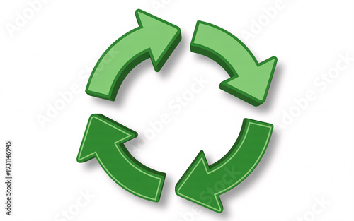 Obraz premium Green recycle symbol with four arrows in circular motion on white background
