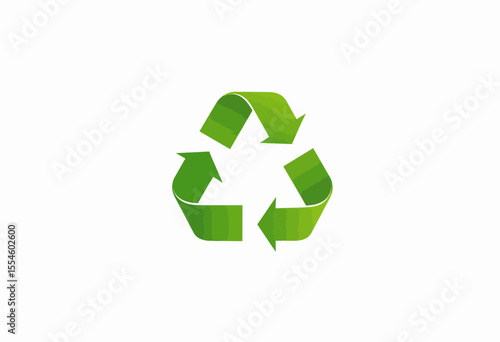 Obraz premium Green recycling symbol in minimalist style on white background