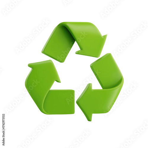 © Sunny_nsk, Obraz premium Green Recycling Symbol on White Background, PNG clipart element with transparency