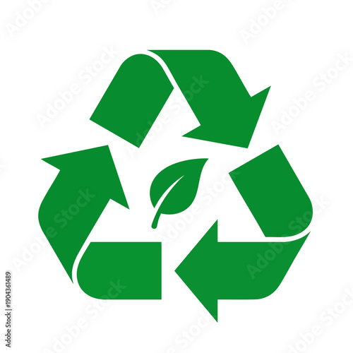 © narroveseacan12, Obraz premium Green Recycling Symbol with Leaf