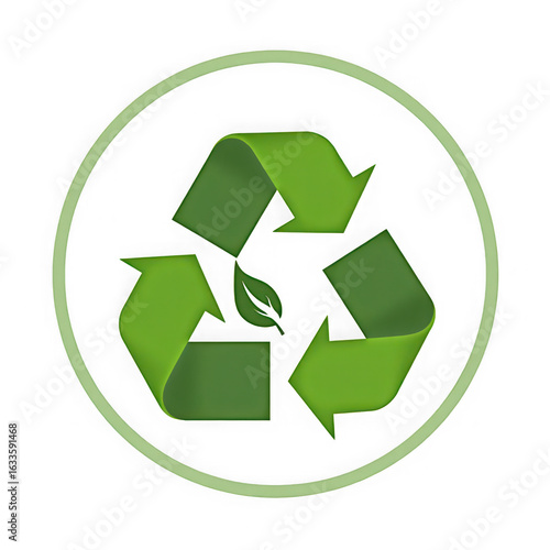 © Joy, Obraz premium Green recycling symbol with leaf icon in a circle isolated on transparent background