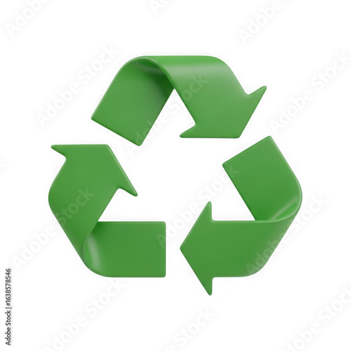 © RONY, Fototapeta premium Green recycling symbol with three chasing arrows forming a continuous loop 3d renderings isolated on transparent background