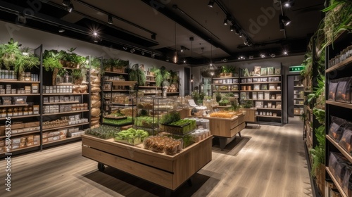 Fototapeta premium Green Retail: Eco-Friendly and Healthy Food Shopping Experience. Generative AI