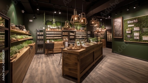 Fototapeta premium Green Retail: Eco-Friendly and Healthy Food Shopping Experience. Generative AI