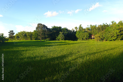 © thekopmylife, Fototapeta premium Green Rice Field and Blue Sky