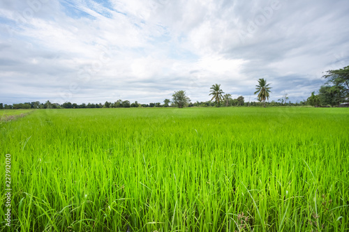 Fototapeta premium Green rice field in a cloudy day