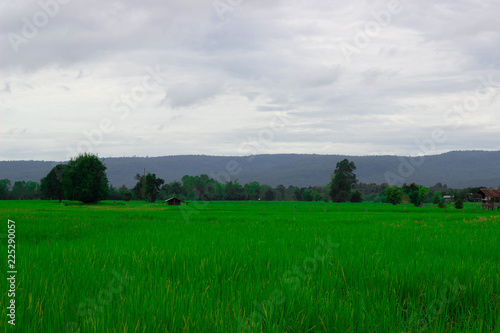 © waraphot, Fototapeta premium Green rice field near the mountain Beautiful landscape