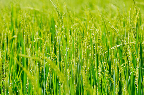 © subinpumsom, Obraz premium Green rice in the field rice background