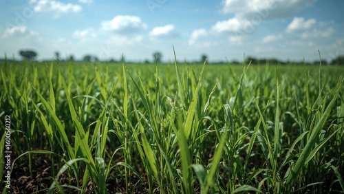 © GenZGraphics, Obraz premium Green Rice Shoots Emerging from Soil