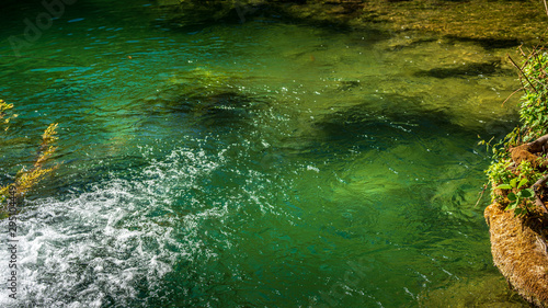 © mk4oto, Obraz premium Green river surface with small waterfall
